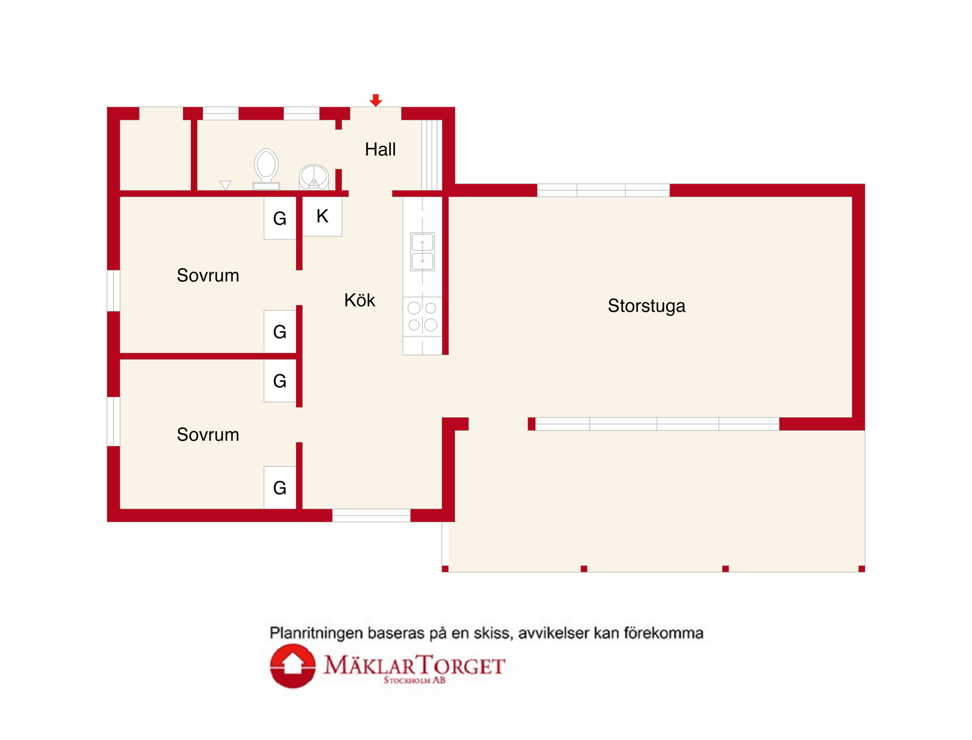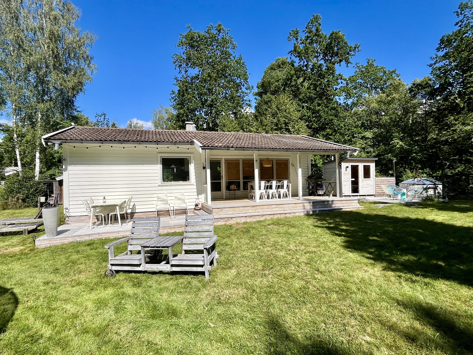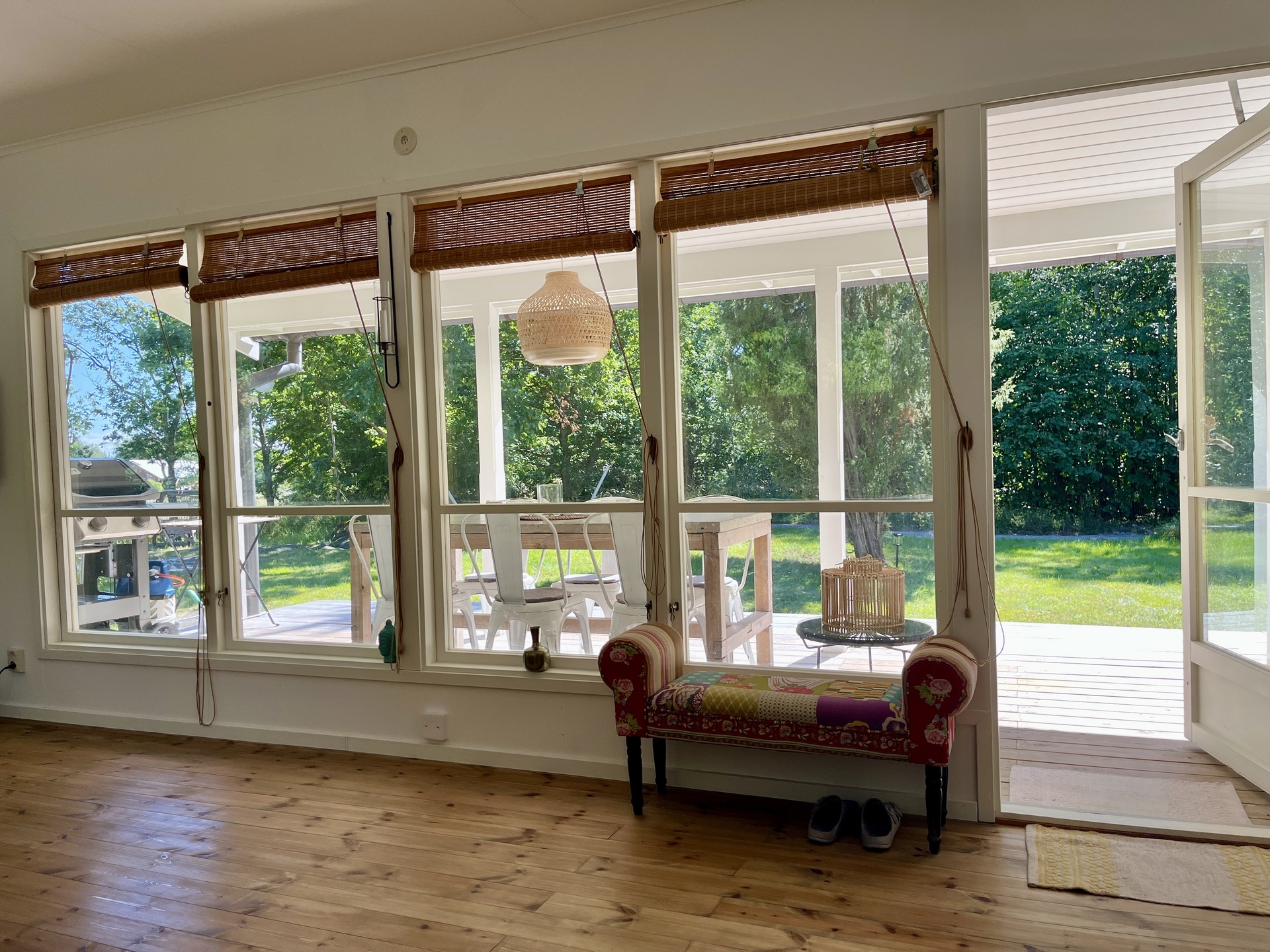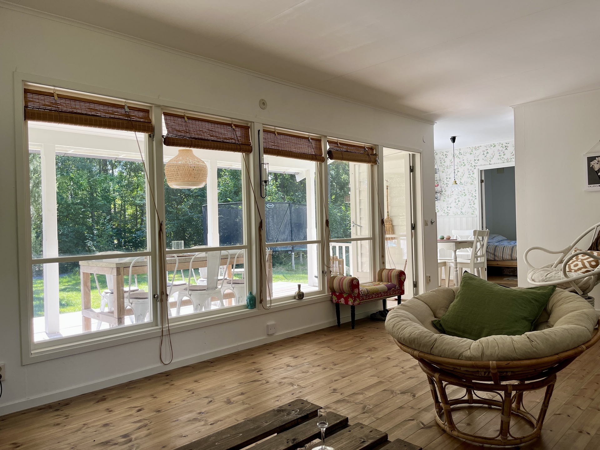 Entré Hall med praktisk kapphängare, laminatgolv. På utsidan till höger om entrén, finns ett mindre förråd med vv-beredare. Till vänster om entrén finns ett praktiskt vedförråd. Badrum Badrum med fönster, duschhörna, separett, tvättställ med spegelskåp ovan, samt förvaring under, stilren klinker på golvet. Kök Köket är utrustat med spishäll, ugn, fläkt, kombinerad kyl/frys. Bra förvaringsmöjligheter, och kakel ovan bänkskiva av ek. Matplats för fyra personer, vacker bröstpanel samt ett fint trägolv. Sovrum 1 Sovrum med en våningssäng, samt en vanlig säng, två garderober, laminatgolv. Sovrum 2 Sovrum med plats för dubbelsäng, två garderober, laminatgolv. Vardagsrum Stort vardagsrum som har ett fantastiskt ljusinsläpp, en trivsam braskamin med inbyggd fläkt, vackert trägolv, och utgång till den härliga altanen i söderläge. Renoveringar 2022- Målning och tapetsering i samtliga rum, samt utvändig ommålning av huset. Uppfört vedeldad bastu, badtunna med bubbelfunkiton, utedusch samt tillhörande trädäck vid bastu och badtunna. 2021- Nytt kök och nya vitvaror. Nytt furugolv (hårdvaxoljat) i köket och vardagsrummet. Badrummet har fått ny kommod, ny Separett (9000) samt våtrumsmålat väggar och tak, nytt klinkergolv. Ny varmvattenberedare. Solcellsstyrd lyktstolpe mellan husen.