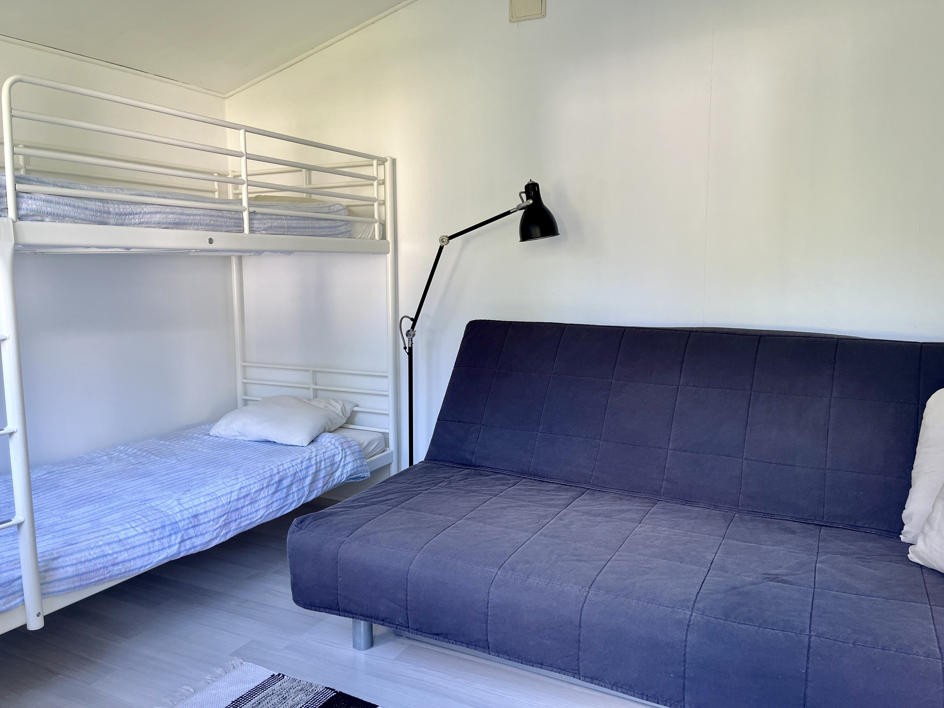 Två praktiska gästhus med bäddsoffa och våningssängar. Båda husen har el indragen. Det ena huset är i behov av att lägga ett nytt papptak, takpapp finnes. Förråd under tak finns i anslutning till gäststuga två.